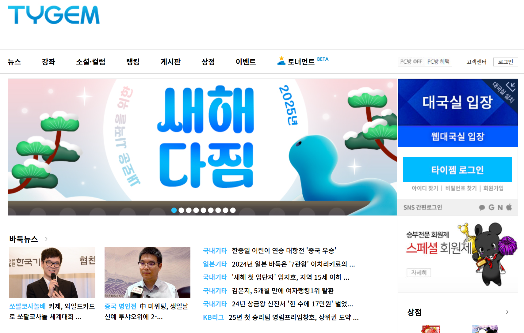 타이젬바둑 설치의 첫걸음은 공식 홈페이지(http://tygem.com/)에 접속하는 것입니다. 네이버나 구글 등 포털사이트에서 "타이젬"을 검색하거나 직접 주소를 입력하여 쉽게 접근할 수 있습니다.