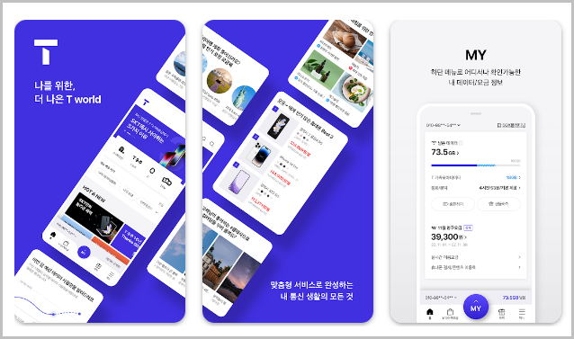 여기로 들어가시면 티월드 어플을 다운로드 할수 있습니다. SKT 가입자라면 데이터 요금없이 무료로 이용을 할 수 있습니다. 여러가지 혜택, 데이터, 통화량, 요금 등 여러가지 것들을 확인할수 있고, 요금제 변경이 가능합니다. 홈페이지에서 이용가능한것들을 여기서도 동일하게 사용할 수 있습니다.