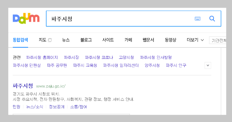 위 이미지는 '다음'에서 파주시청이라고 검색을 한 결과입니다.