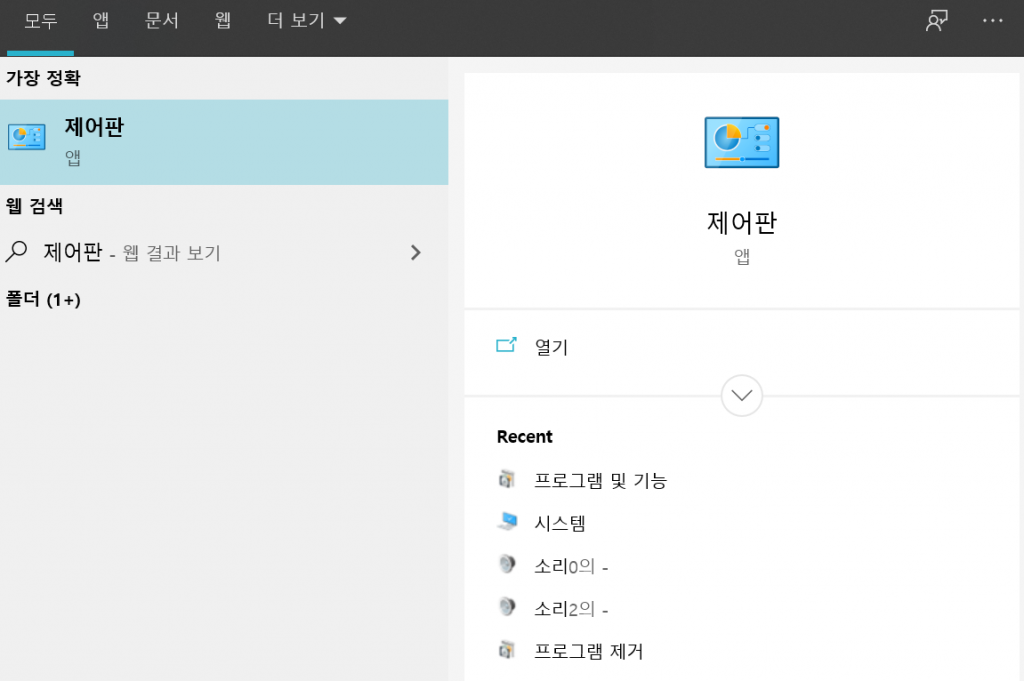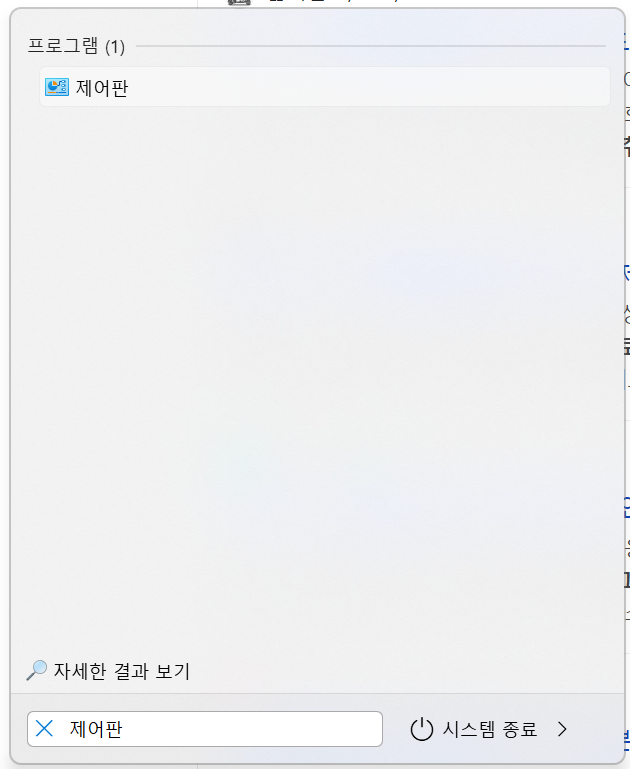 시작 메뉴에서 제어판을 검색하면 위와 같은 화면을 볼 수 있습니다. 이것을 클릭하여 들어갑니다. 위의 이미지는 왼쪽은 윈도우10이고 오른쪽은 윈도우11입니다.