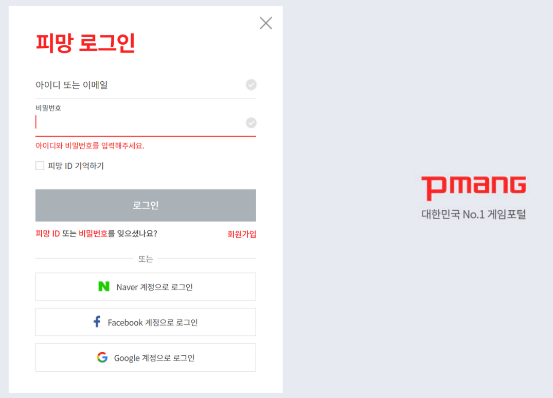 위와 같은 화면에서 아이디와 비밀번호를 입력을 하시면 됩니다. 만약 회원가입이 되어 있지 않아서 아이디가 존재하지 않는 경우에는 SNS를 통하여 간편하게 가입을 할 수 있습니다. 이러한 방식으로 ID를 생성하게 된다면 간편하게 이용할수 있어서 장점이 많습니다.