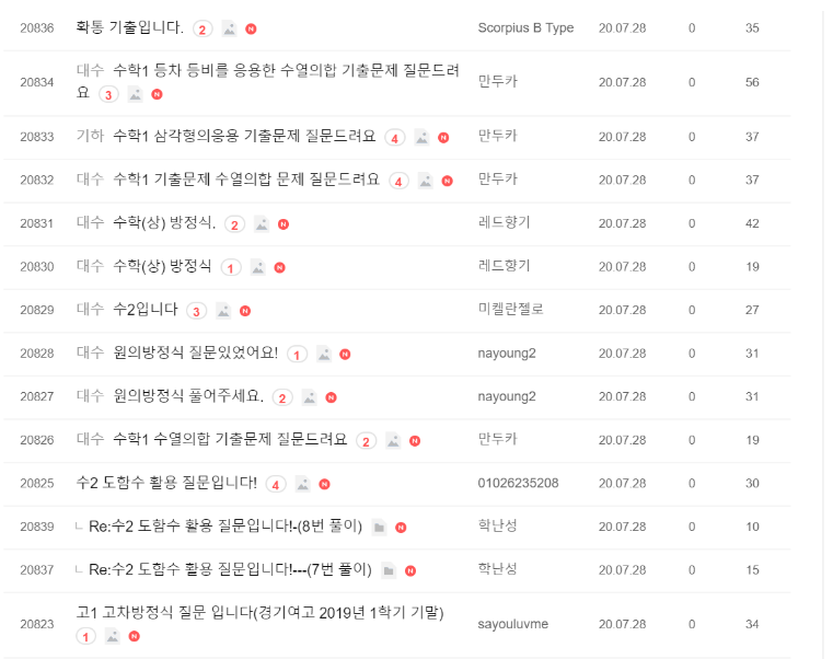 이 카페에서는 주료 고등학교 2학년과 3학년 수준의 문제가 많이 올라오게 됩니다. 아마도 난이도가 많이 높아지기 때문에 그런게 아닌가 싶습니다. 모든 문제에 답이 달리는것은 아닙니다. 하지만 대부분의 문제에 답이 달립니다.