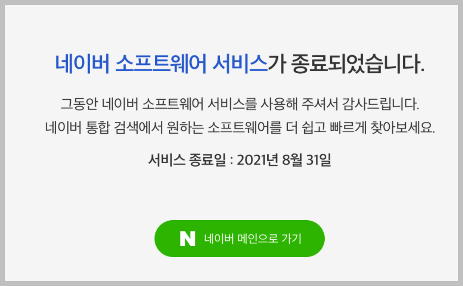 네이버 소프트웨어가 망했습니다. 더이상 네이버에서 유틸리티를 다운로드를 할 수 있는 공간이 사라졌다는 의미이지요. 많은 유틸리티들이 MS스토어에서 제공이되고, 모바일에서 제공이 되기 때문에 네이버 소프트웨어의 유의미성도 많이 줄어든것이 사실이지요.