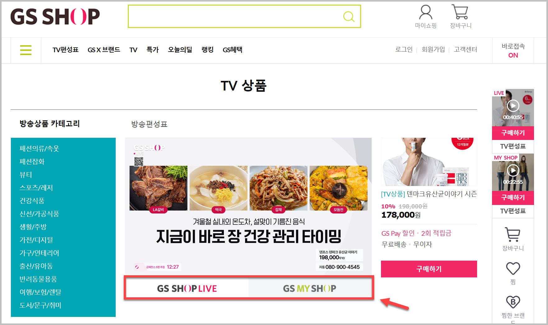 이 서비스는 여러가지 이름으로 불리었지만 지금은 GSSHOP이라는 이름으로 정착이 되어 있습니다. 채널은 2가지가 있습니다. 샵라이브가 있고,마이샵이 있습니다. 위 화면을 보시면 채널을 선택할수 있도록 되어 있습니다. 다른 상품을 판매하고 있으니까 둘다 보는것을 권해드립니다.